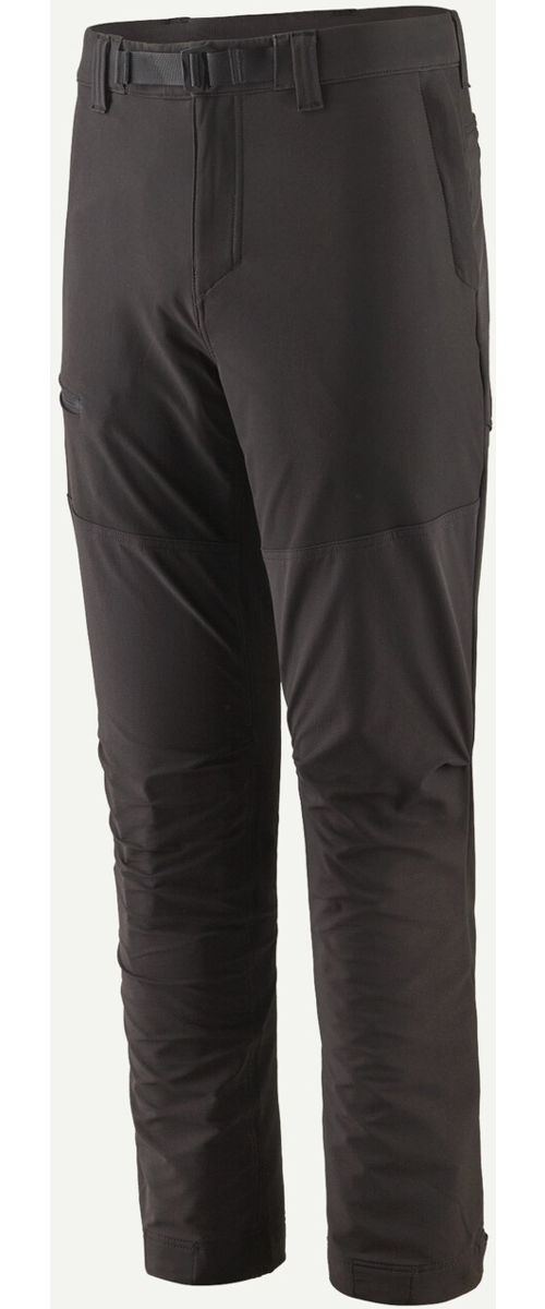 Gusseted crotch and prominent knee articulation for freedom of movement; designed for a sleek fit under a backpack waistbelt or a harness